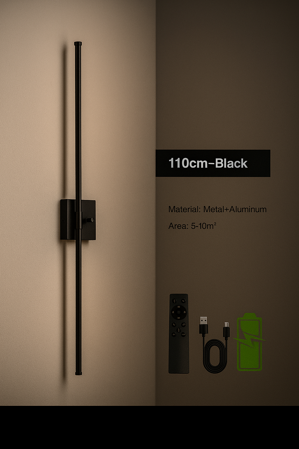 Powered by a built-in rechargeable battery, this wireless LED lamp eliminates the need for complex wiring, offering a clean, minimalist look. Available in 70cm, 90cm, and 110cm sizes, it features a rotatable design that lets you direct light exactly where you need it — whether for ambient glow, reading, or decorative accents.